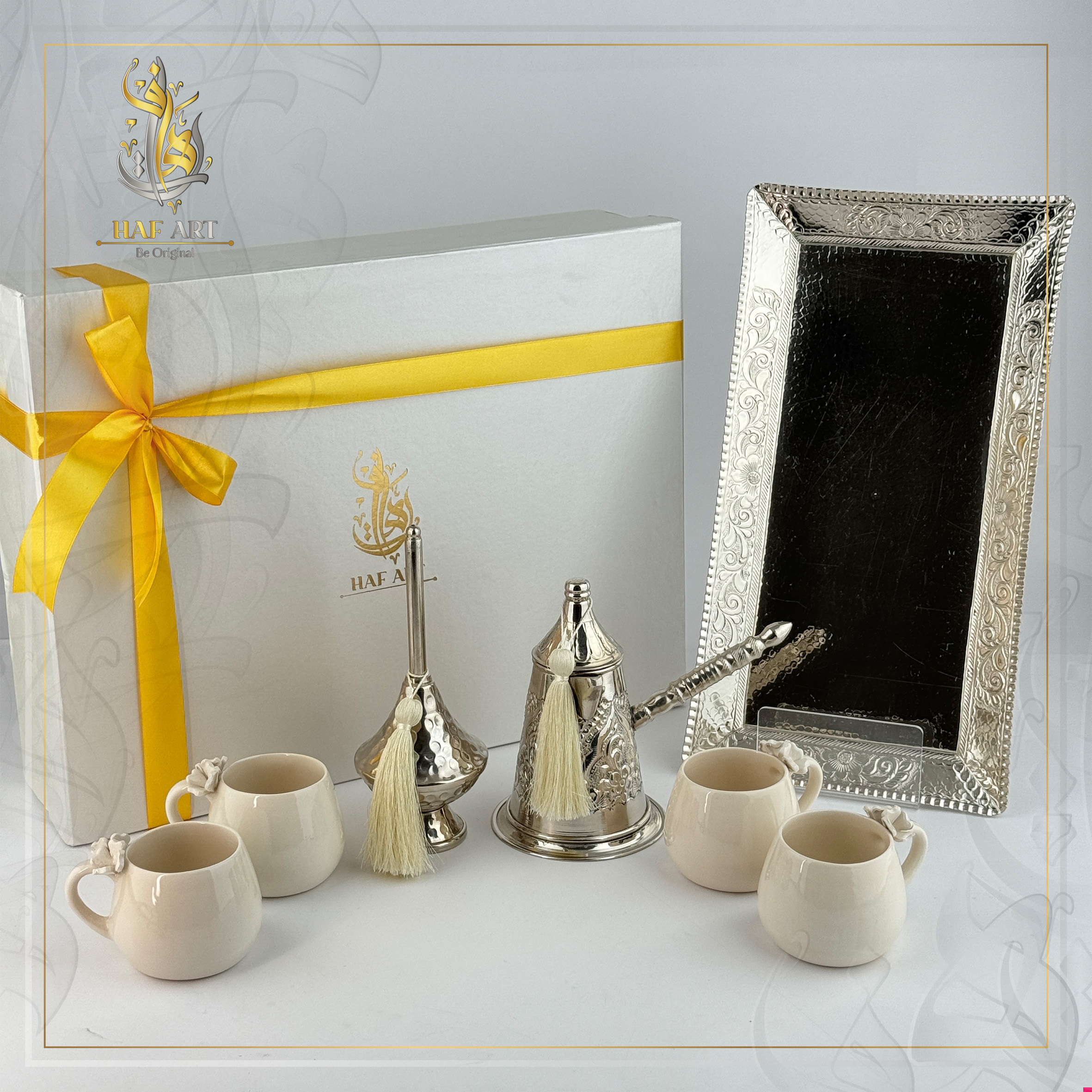 Cet ensemble est idéal pour accueillir vos invités avec style, offrir un cadeau artisanal d’exception ou embellir votre intérieur. Grâce à son mariage harmonieux entre céramique délicate et cuivre ciselé, le set Café Fleur apporte une touche d’élégance orientale et de modernité à chaque moment café.