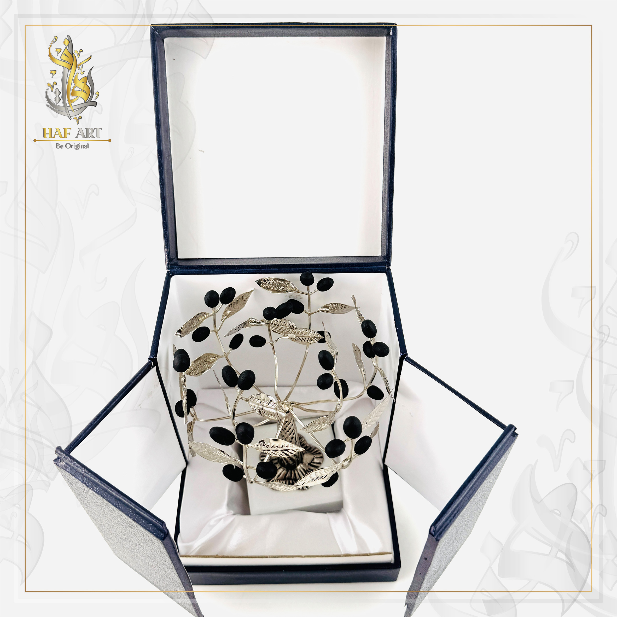 Plongez dans l’authenticité et l’élégance avec Zitouna, une pièce artisanale unique représentant l’olivier, symbole de paix et de prospérité.